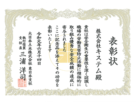 支部長(会社表彰) 株式会社キステム