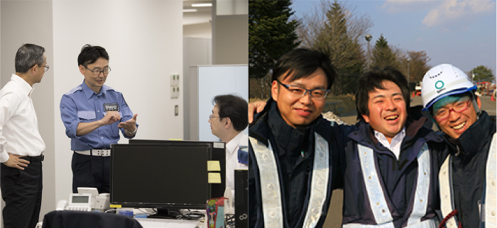 地域社会の安心・安全を守るために、本社・支店・現場の社員が一丸となって組織力の向上を目指しています。その一環として、各支店の教育指導担当者と現場のリーダーが一堂に会して技能を高め合う「スキルアップ交流会(仮)」を実施するなど、全国の取り組みを共有する機会を増やしていきます。また、支店を超えた交流と現場の経験値アップに役立つコミュニケーションツールとして、社内報を発行しています。